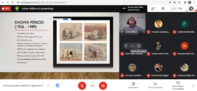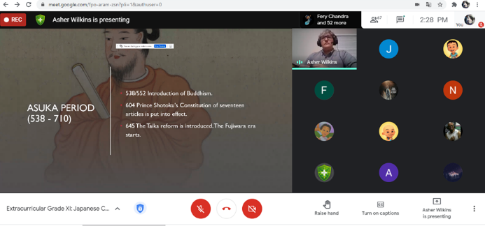 Program kerjasama ini akan selama 5 pertemuan, yang dilaksanakan satu minggu sekali sejak tanggal 25 Februari 2021 dan akan berakhir di tanggal 8 April 2021 nanti. Kegiatan Cultural awareness ini merupakan bagian dari kegiatan ekstrakurikuler wajjib anak-anak kelas XI di SMA Krista Mitra dan di pertemuan pertama ini, anak-anak masih diperkenalkan pada perkembangan sejarah Jepang dari masa ke masa.
