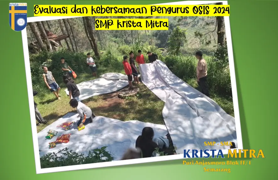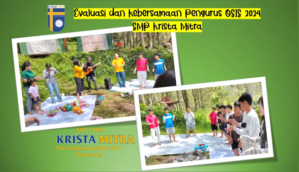 Teman-teman terkasih bertemu kembali dengan berita tentang SMP Krista Mitra. Kegiatan yang akan kami ceritakan kali ini adalah evaluasi kepengurusan OSIS periode 2024. Bukan hanya evaluasi, kegiatan ini sekaligus sebagai sarana mempererat persahabatan di antara para pengurus OSIS periode 2024. Kegiatan ini diselenggarakan pada hari Jumat dan Sabtu tanggal 28 Februari sampai 1 Maret 2025 di wisata alam glamping Perantunan, Bandungan yang terletak di lereng Gunung Ungaran pada ketinggian 1.290 mdpl.