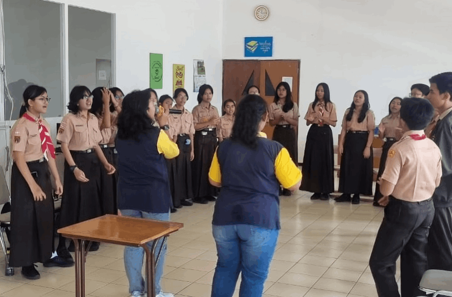 Pujian “Hari ini Kurasa Bahagia” mengawali persekutuan bersama siswa SMPN 1 Semarang dengan tim KICC SMA Krista Mitra pada hari Jumat, 27 September 2024   . Suasana pun menjadi hangat dan penuh dengan sukacita di tengah kebersamaan “kakak-adik” ini; bertepuk tangan serta bergandengan tangan satu dengan lainnya sebagai sesama remaja pengikut Kristus.