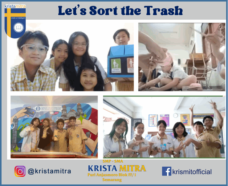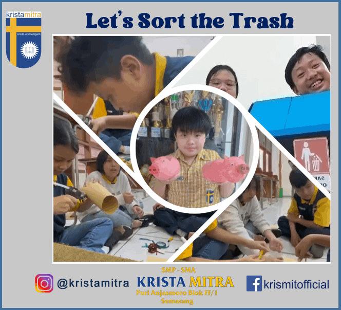 Dalam mata pelajaran Bahasa Inggris terdapat kegiatan pembelajaran “Let’s Sort the Trash,” dimana siswa mempresentasikan proyek kreatif yang dibuat dari bahan bekas. Mereka mengubah sampah menjadi barang yang berguna dan dekoratif. Pelajaran yang dapat dipetik dari kegiatan ini adalah siswa menyadari bahwa sampah dapat didaur ulang, lebih berguna dari pada dibuang.